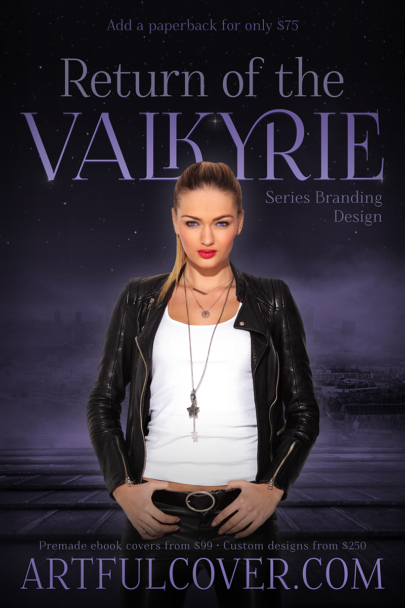 Return of the Valkyrie is a mythological urban fantasy premade book cover which would work well for most urban fantasy, along with contemporary and paranormal fantasy titles. A young woman stands against a smoky violet cityscape with modern scrolled serif titling. This premade book cover design includes existing text as shown. Text features can be modified in type color, font, and positioning or more features may be added, though these changes may require additional design costs.